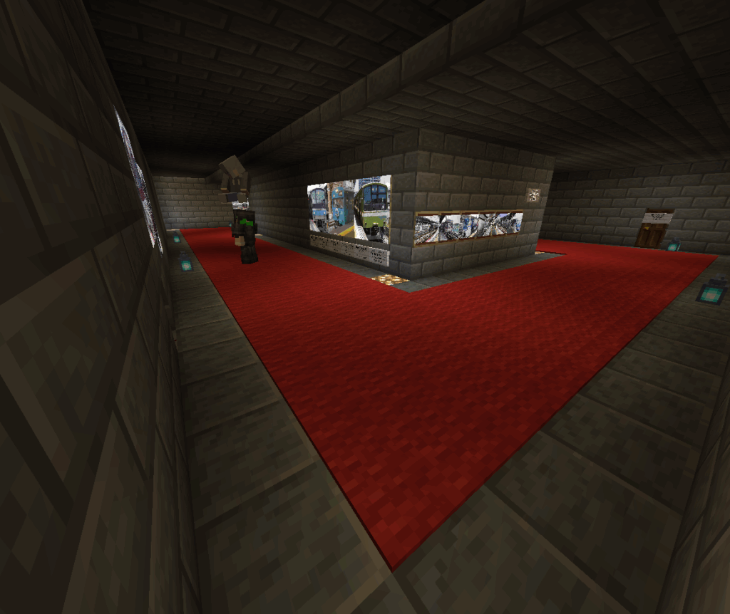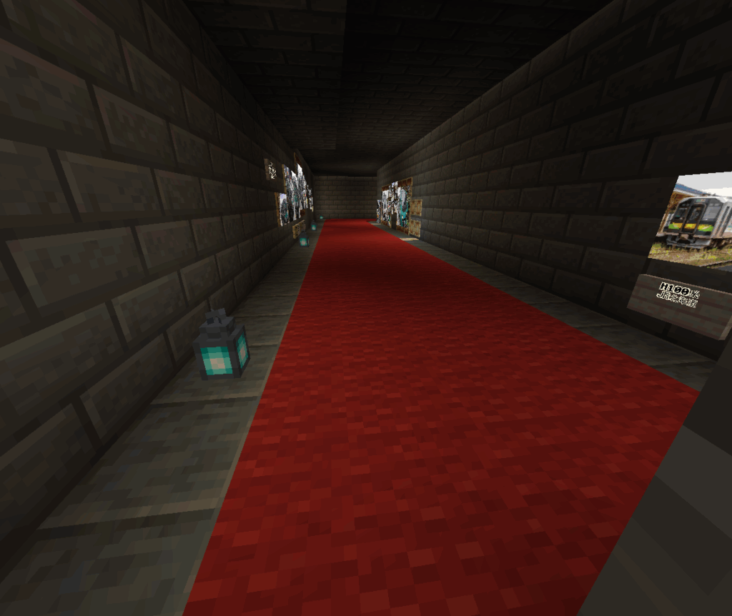 入口から、北海道エリア、東北エリア、甲信越エリア、関東エリア、東海エリア、関西エリア、九州エリアの順に、現実の列車の画像が張られている。